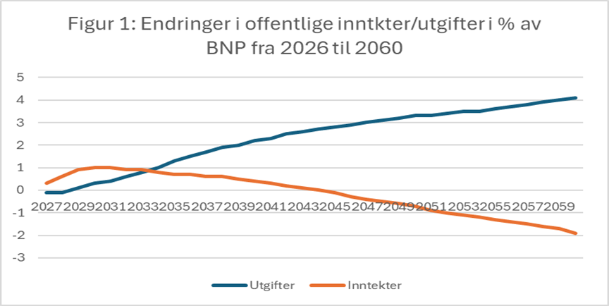 Mange er opptatt av oljepengebruken, som trolig blir rundt 600 milliarder kroner for 2026, når regnskapet gjøres opp ved juletider. Det høres høyt ut, men om lag 100 av disse går til Ukraina relaterte tiltak, mens nye 100 går til offentlige realinvesteringer i Norge. Oljepenge-FORBUK innenlands på nordmenn er bare 400 (hvorav om lag 50 er gaver til utlandet) vi strengt tatt ikke trenger å gi. I mitt hode kan da spørsmålet om den langsiktige bærekraften til statsfinansene omskrives til: